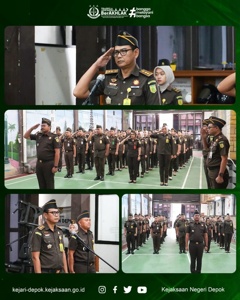 Depok, (26/01/2025). Pelaksanaan Apel diikuti oleh Kasubagbin, Para Kepala Seksi serta seluruh pegawai Kejaksaan Negeri Depok, serta bertindak sebagai pembina Apel Kepala Sub Bagian Pembinaan, Firdaus, S.H., M.H. serta bertindak sebagai Komandan Apel adalah Kepala Sub Seksi Perdata dan Tata Usaha Negara, Wahyushiddi Triatmojo, S.H.