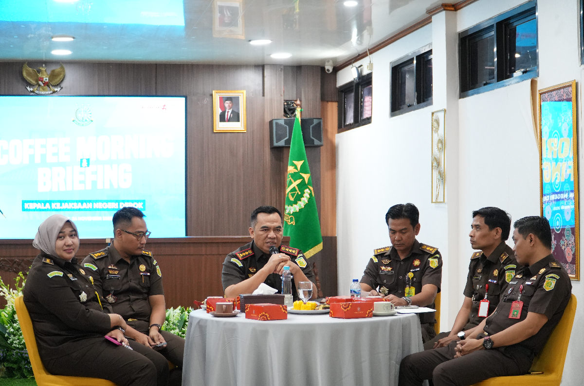 Depok, (24/11/2025) Kejaksaan Negeri Depok melaksanakan Coffee Morning sekaligus Pengarahan yang diberikan oleh Kepala Kejaksaan Negeri Depok Dr. Arif Budiman, S.H., М.Н. kepada Kasubagbin, Para Kepala Seksi beserta seluruh Jaksa Kejaksaan Negeri Depok dalam rangka meningkatkan Kinerja Kejaksaan Negeri Depok bertempat di Aula Kejaksaan Negeri Depok.