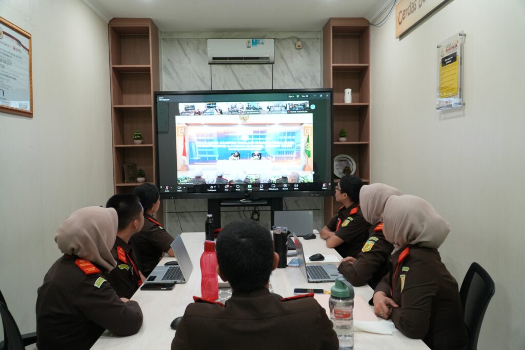 Depok, (24/11/2025) seluruh peserta Latsar CPNS Golongan II T.A 2025 di Kejaksaan Negeri Depok mengikuti kegiatan Evaluasi Alumni Diklat Tahun 2024 dan Monitoring Latsar Khusus Tahun 2025 secara virtual bertempat di ruang rapat Kejaksaan Negeri Depok.
