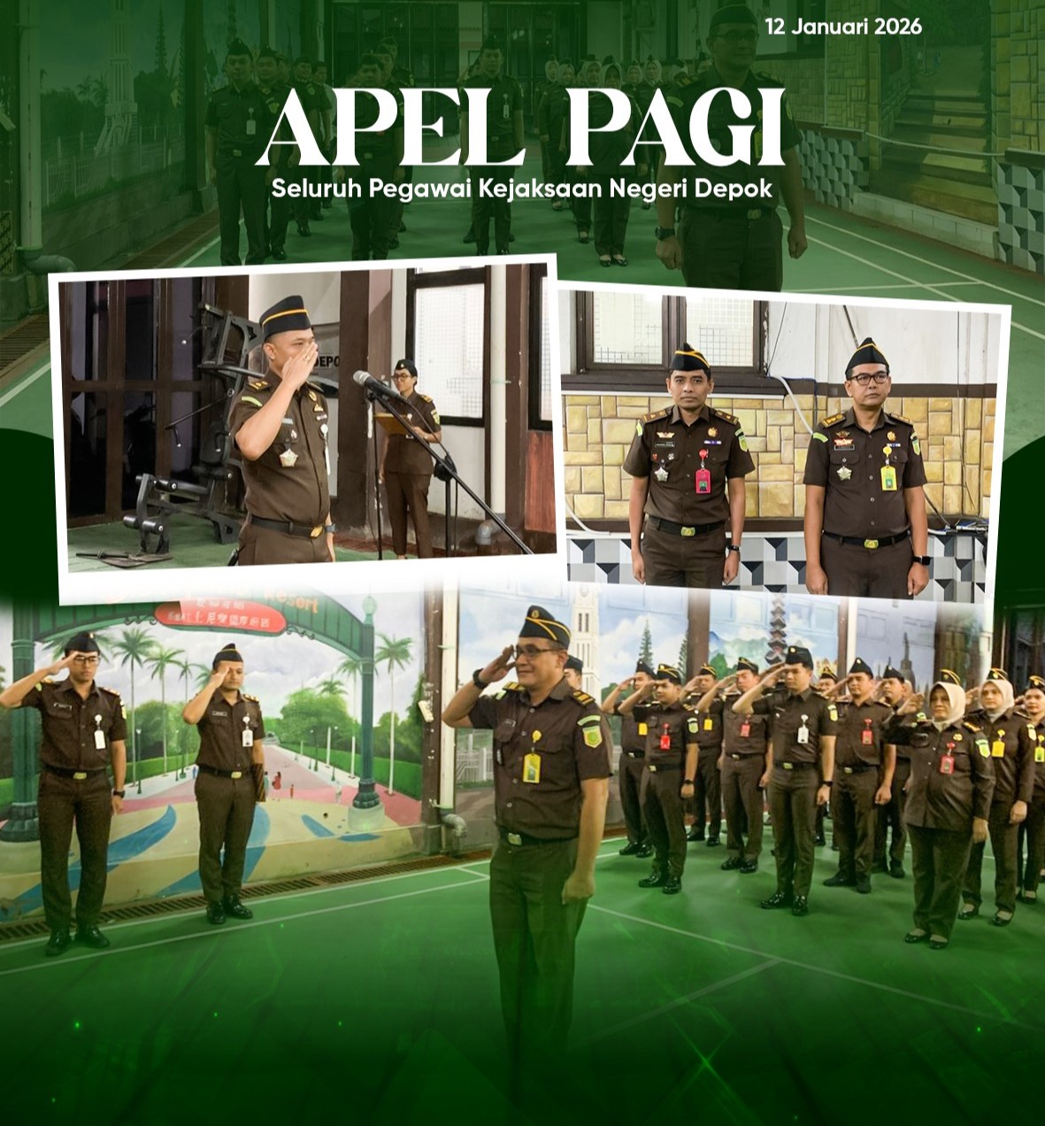 Depok, (12/01/2026) di Halaman Kantor Kejaksaan Negeri Depok, Pelaksanaan Apel diikuti oleh Kasubagbin, Para Kepala Seksi serta seluruh pegawai Kejaksaan Negeri Depok dan, bertindak sebagai pembina Apel Kepala Seksi Pemulihan Aset dan Pengelolaan Barang Bukti, Dr. Andi Tri Saputro, S.H., M.H. serta bertindak sebagai Komandan Apel adalah Kepala Urusan Perlengkapan, Endro Susilo, A. Md