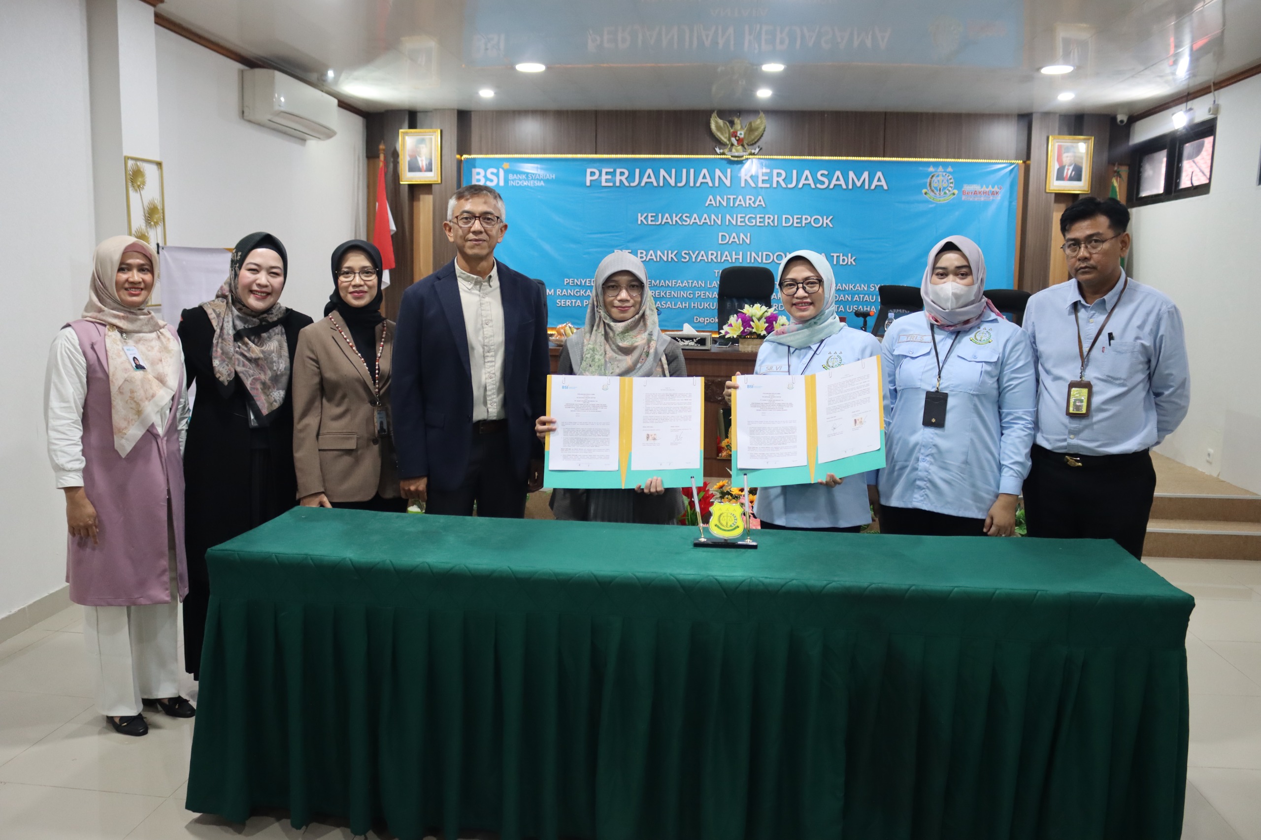 Perjanjian ini ditandatangani oleh perwakilan kedua belah pihak dengan disaksikan oleh para tamu undangan. Penandatanganan perjanjian ini diharapkan dapat memperkuat sinergi antara Bank Syariah Indonesia KCP Depok Dua dan Kejaksaan Negeri Depok dalam mengelola dan memanfaatkan layanan perbankan syariah, serta menyelesaikan masalah hukum di bidang perdata dan tata usaha negara.
