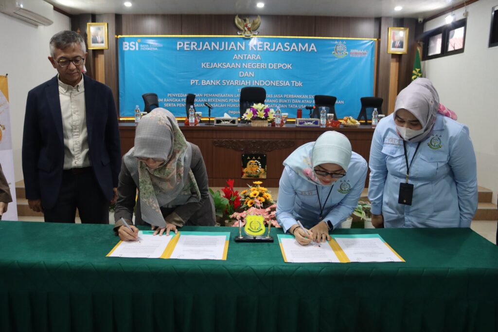 Depok – Selasa (2/7/2024), telah dilaksanakan penandatanganan Perjanjian Kerjasama antara Bank Syariah Indonesia (BSI) KCP Depok Dua dan Kejaksaan Negeri Depok. Perjanjian ini bertujuan untuk “Penyediaan dan Pemanfaatan Layanan Fasilitas Jasa Perbankan Syariah dalam rangka Pembukaan Rekening Penampungan Barang Bukti dan/atau Barang Sitaan serta Penyelesaian Masalah Hukum Bidang Perdata dan Tata Usaha Negara.”